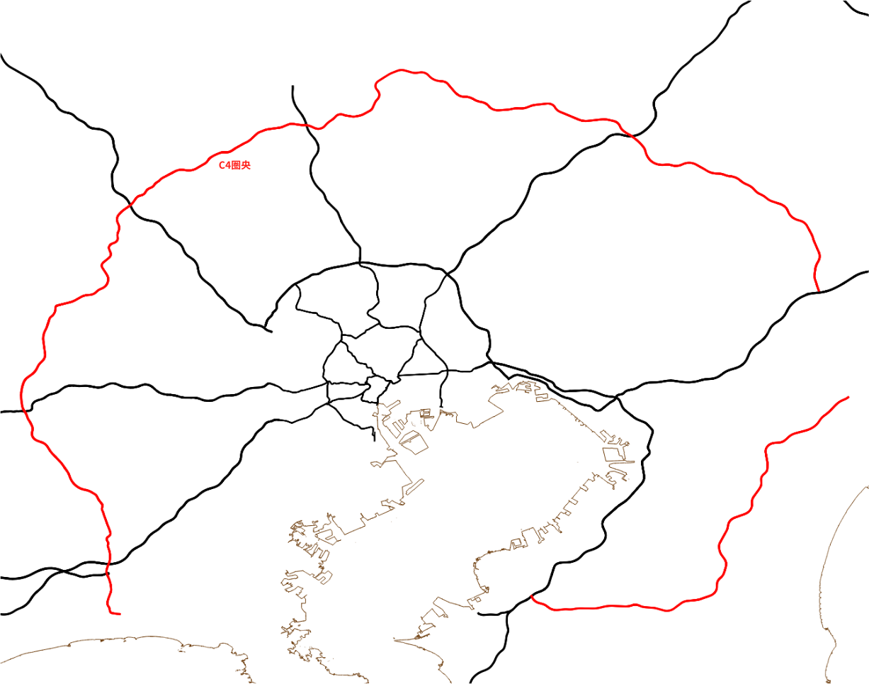環状線の4本目はC4圏央道です。料金制度的には高速道路の一部なので唯一打ち切りがありません。東京に入る必要がないなら真っ先に候補に上がる道路でしょう。