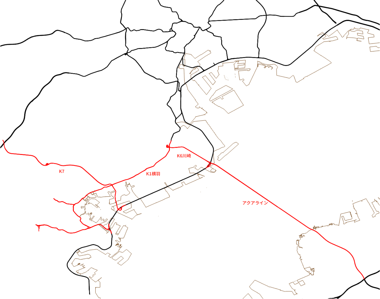 ただ特筆すべき例外としてE1東名との接続があり、最近開通したK7へ、B湾岸かK1横羽線を経由して入るのがかなり便利です。一応保土ヶ谷バイパスという、ここには書いてない別のルートがあり、K7が開通する前はE1東名高速から横浜方面に入る唯一のルートとして扱われていましたが、信じられないほど混むので今となってはあまりオススメしません。